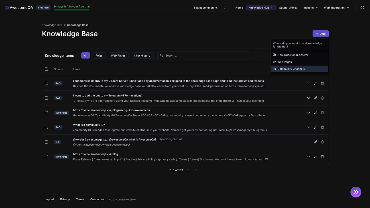 Revamp the knowledge base management experience, empowering users to address outdated information and control bot learning sources effortlessly